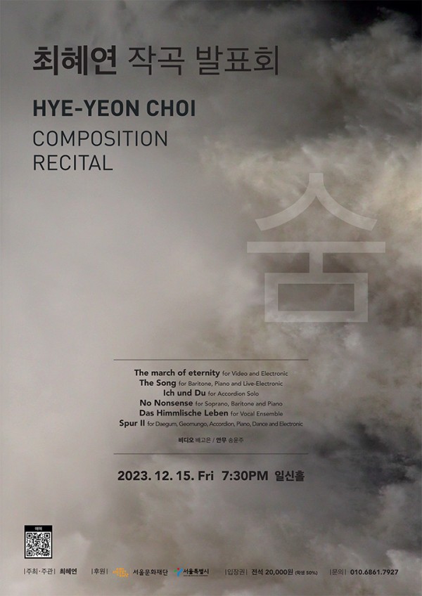 - 바리톤과 피아노, 라이브 전자 음향을 위한 “The Song” (세계 초연)