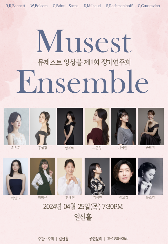 추계예술대학교 유소영 교수와 제자들로 구성된 뮤제스트 앙상블은 현재 각기 다른 모습으로 인생의 페이지를 채워가고 있는 이들이 자신의 삶 속에서 음악의 의미를 되짚어보자는 취지로 탄생하였습니다.