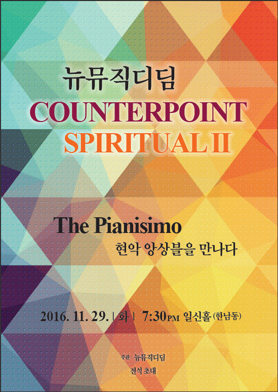 Counterpoint Spiritual 이라는 귀한 이름으로 음악회를 가짐이 뜻 깊고 소중하고 고마운 마음입니다. 천 년도 더