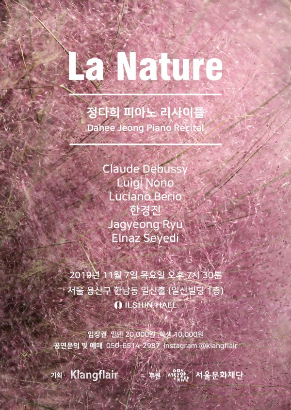 독일과 한국을 오가며 연주 활동을 하는 피아니스트 정다희는 도독 직후 만난 첫 스승 Herbert Drechsel에게 정통 릴렉스 주법을 이어받아 따뜻한 감성으로 자연스러움이 묻어나는 음악을 추구해 왔으며, 무엇보다 청중들에게 무대 위에서 진심으로 노래하는 피아니스트라는 평을 받고 있다. 또한 지금까지 함께 작업한 수많은 작곡가는 그녀를 가장 성실하고 믿을만한 연주자라고 말한다.